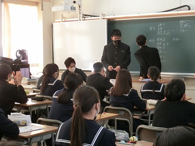 1月8日(木)2校時2年生の学活の様子です。